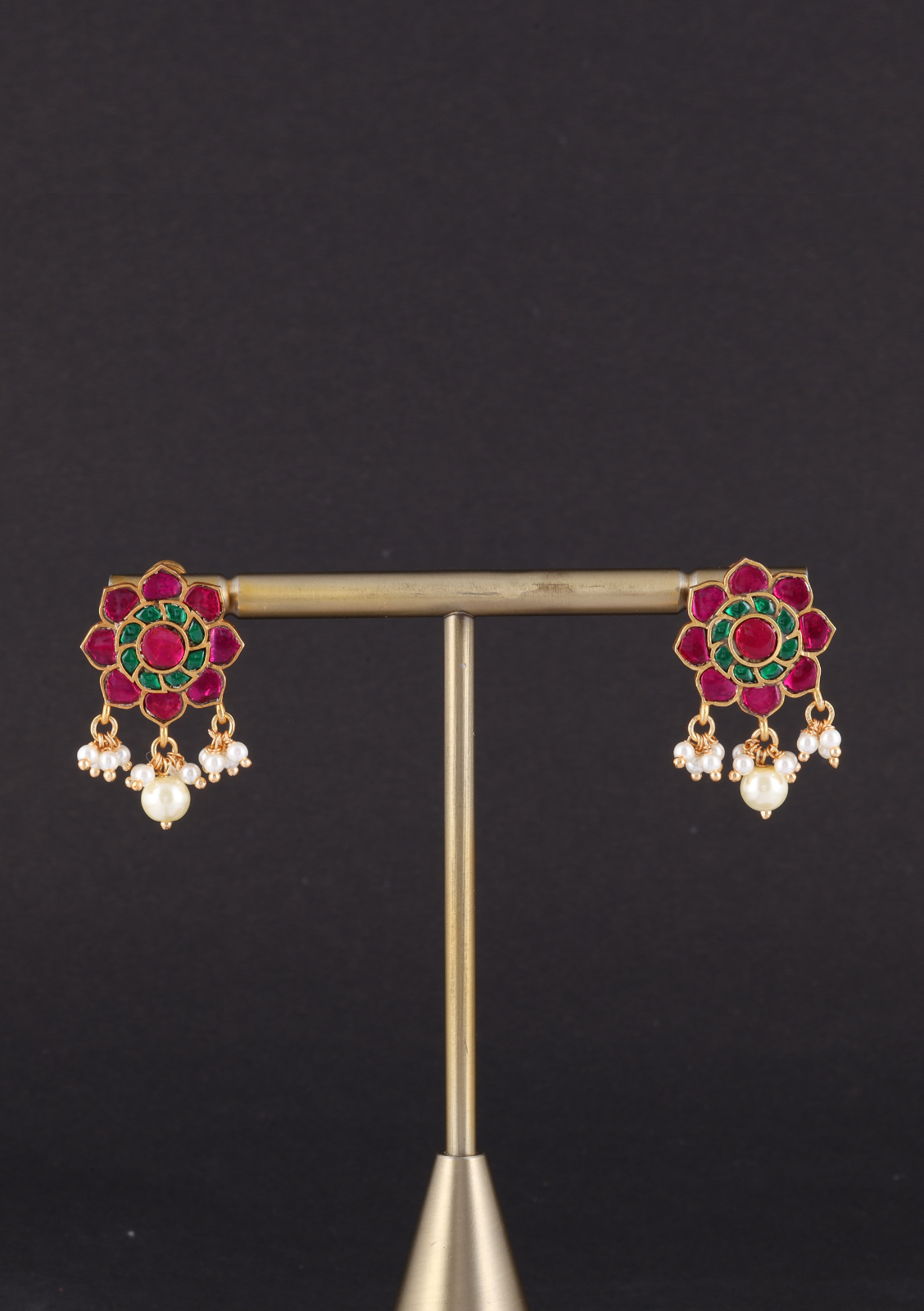Elevate your ethnic look with these exquisitely crafted floral stud earrings. Designed in alloy and finished with 22K genuine gold plating, they capture the richness of traditional gold jewelry with the comfort of modern wear.