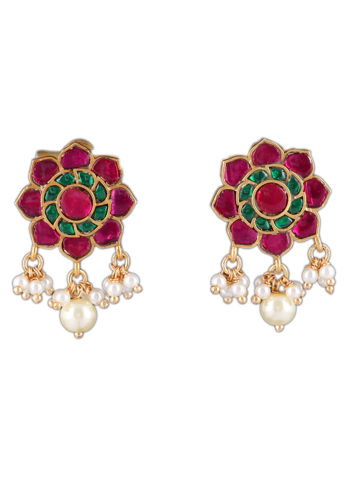 Grace Meets Grandeur – The Vasundhara Jadau Kundan Floral Stud Earrings
