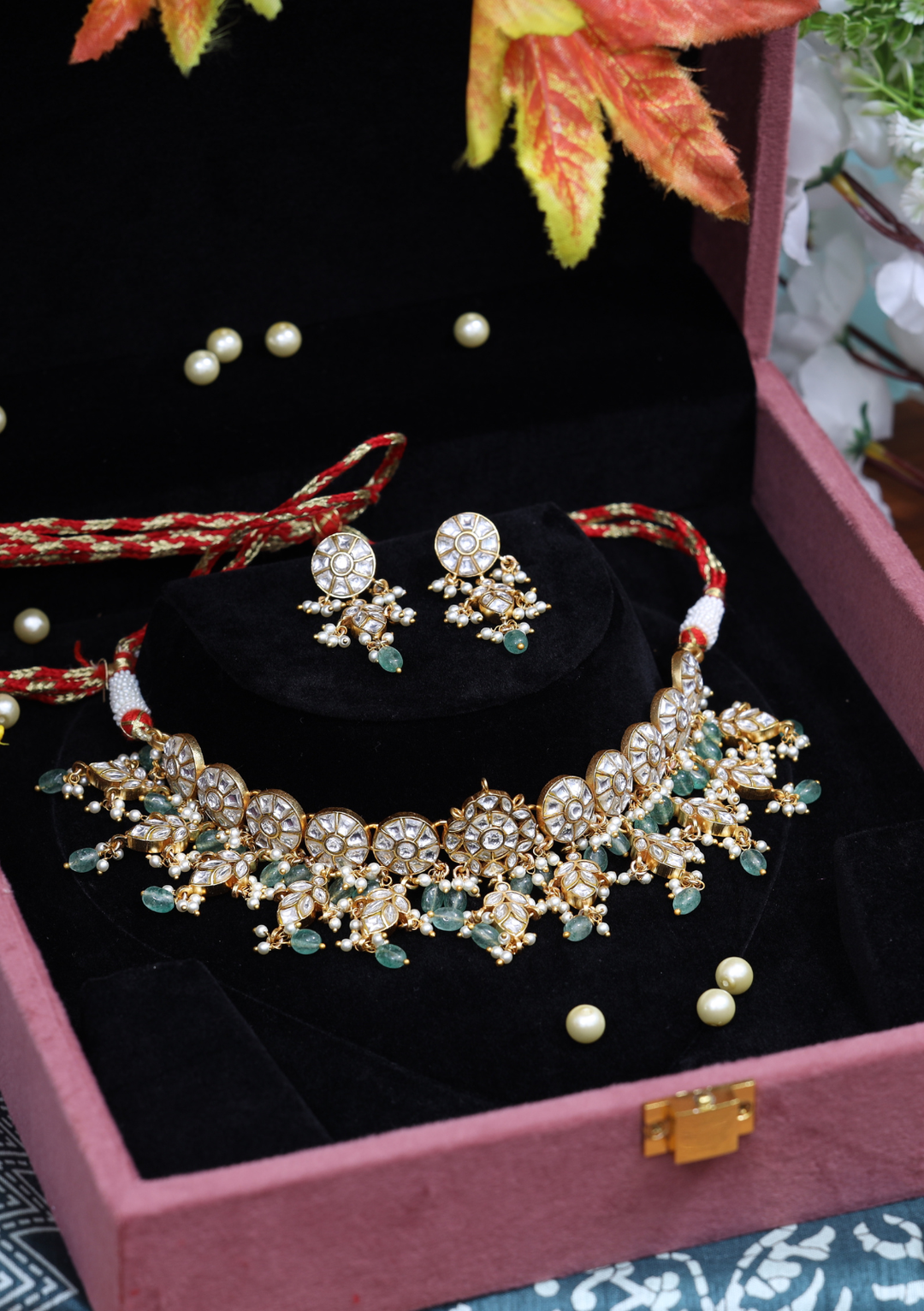 Graceful Jadau Kundan Short Choker Necklace Earring Set