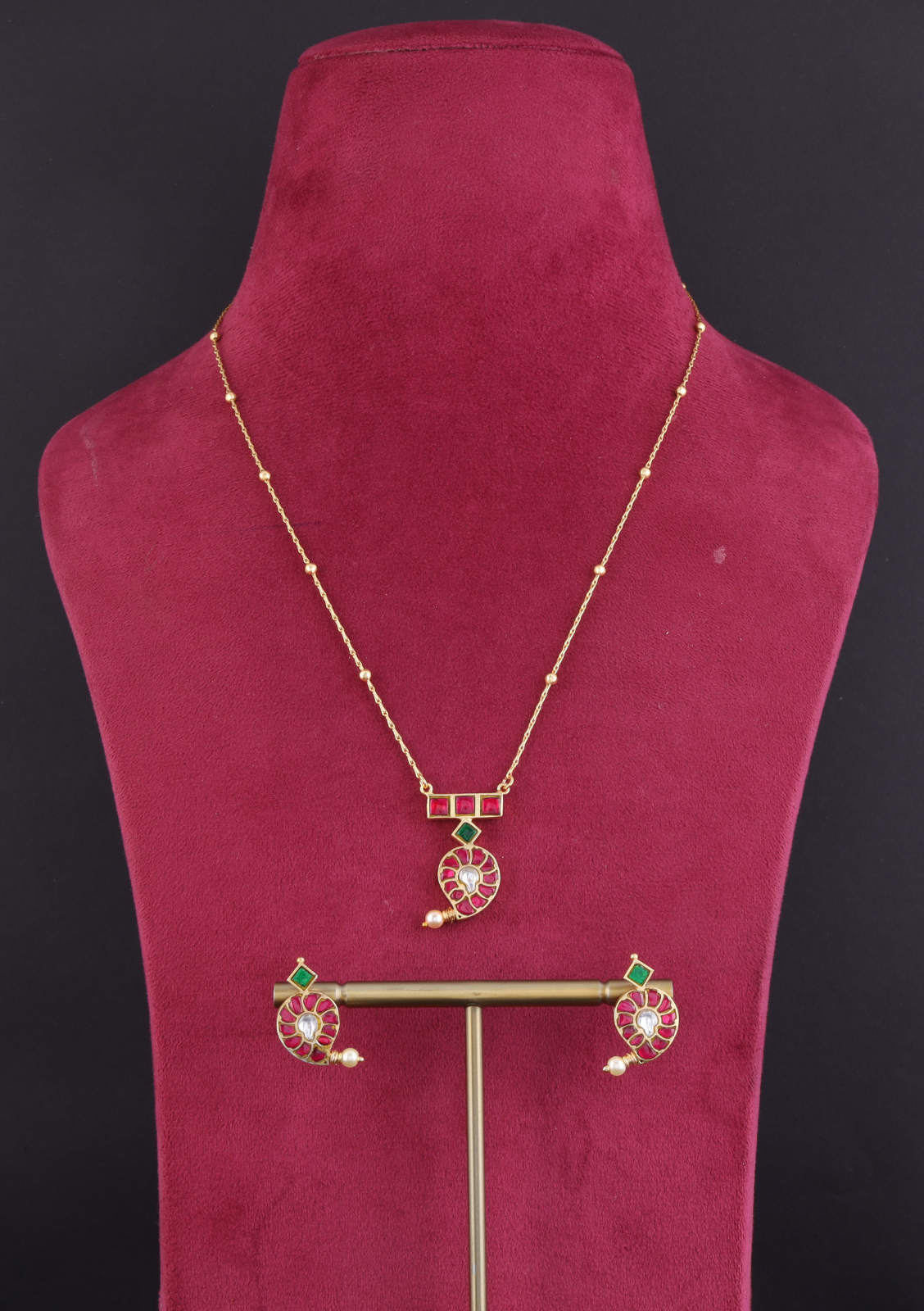Izra Jadau Kundan Minimal Pendant Earring Set