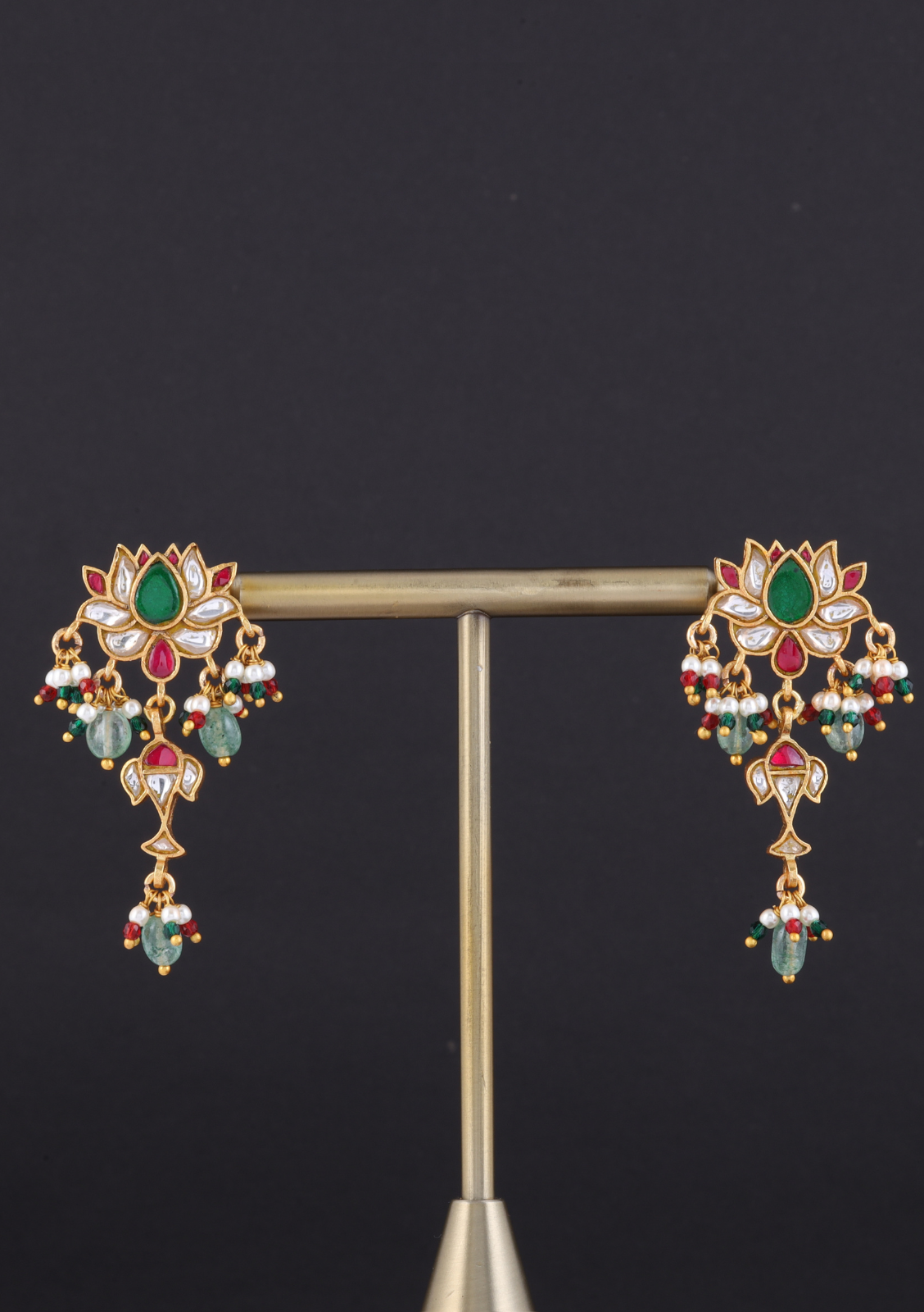 Timeless Jadau craftsmanship meets a radiant 22K gold-like finish — lightweight latkan earrings that add royal charm to weddings, festivals and everyday elegance.