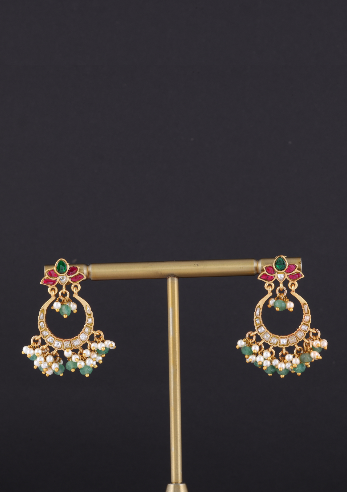 Timeless Chaandbali elegance with intricate jadau kundan detailing and a rich, long-lasting 22K gold-plated finish — luxurious look without the premium price.