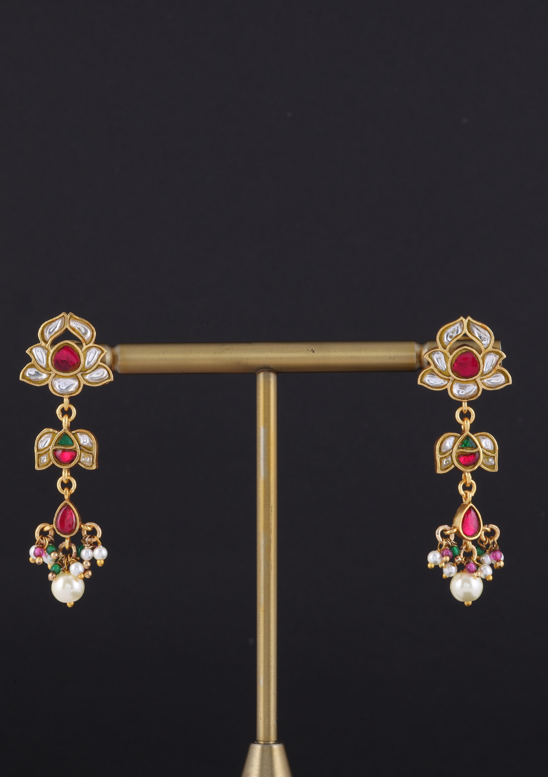 Add instant festive charm with these elegant Jadau Kundan Latkan Earrings — finished with premium 22K genuine gold plating for a lasting, real-gold shine. Lightweight, regal, and perfect for celebrations or everyday ethnic wear.